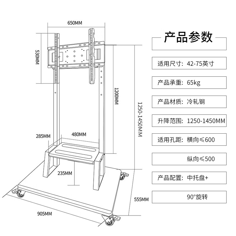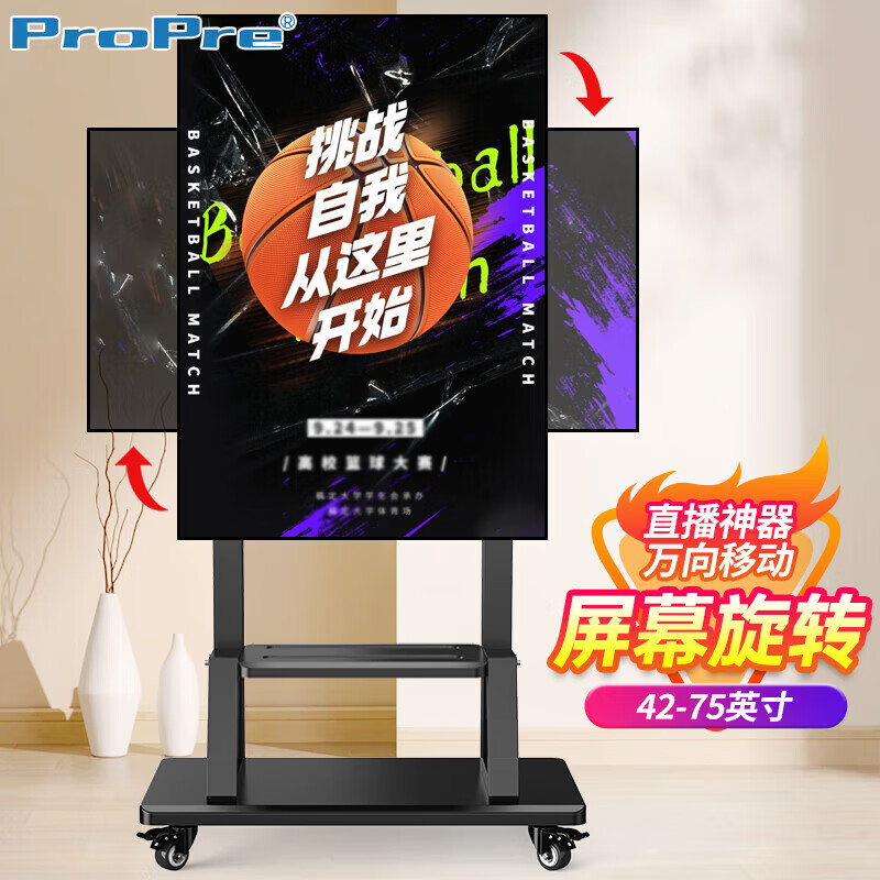 ProPre 旋转屏幕移动电视支架(42-75英寸)通用落地电视挂架电视架子 视频会议显示屏移动推车落地电视支架价格:587.00元!