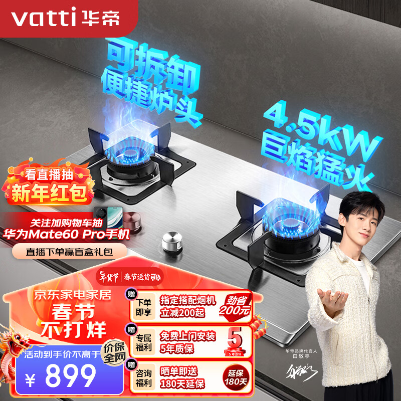 华帝(VATTI)燃气灶家用嵌入式不锈钢面板 4.5kW高热效易打理 双灶具灶台 JZT-i10063A (天然气)价格:899.00元!