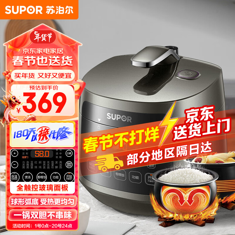 苏泊尔(SUPOR)电锅3L家用触控玻璃10种烹饪菜单智能预约双胆球釜一键排气低温烹饪SY-30FC8058QS价格:369.00元!