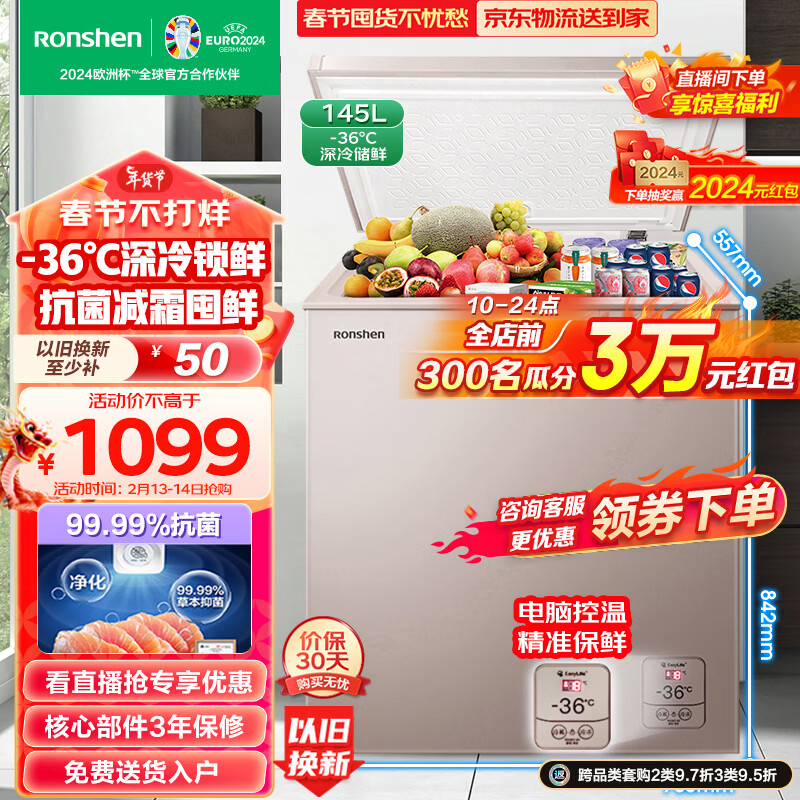 容声(Ronshen) 145升低霜小型冰柜家用单温冷柜 一级能效节能母婴母乳小冰箱 电脑控温冷藏冷冻柜BD/BC-145MSYA价格:1099.00元!