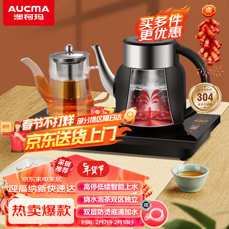澳柯玛(AUCMA)自动旋转上水壶/自动续水恒温电热水壶/保温304不锈钢一体烧水壶/电茶壶/茶具电茶炉J83送礼长辈价格:279.90元!