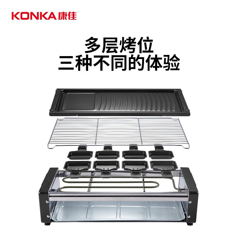 康佳(KONKA)电烧烤炉 多功能电烤盘烤肉机不粘烧烤架子家用无烟烤肉锅电烤炉 双层烤串机?KEG-W261B价格:169.00元!