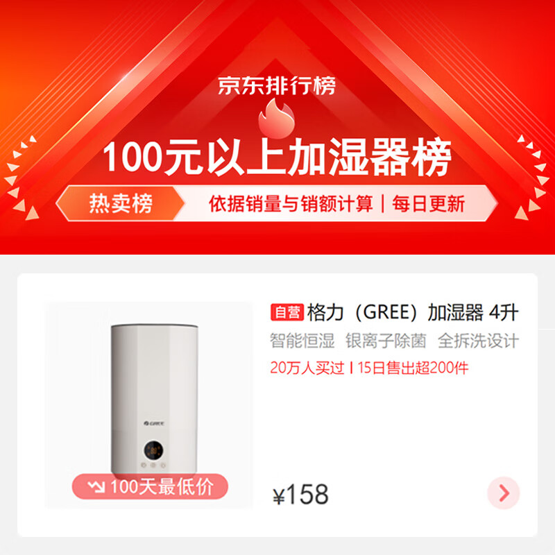 格力(GREE)加湿器 4升大容量 上加水 低噪 智能恒湿 家用婴儿 高出雾 办公室 卧室空气加湿器(SCK-40x71)价格:159.00元!
