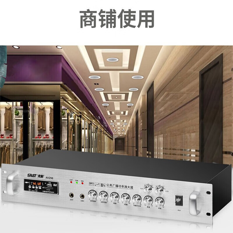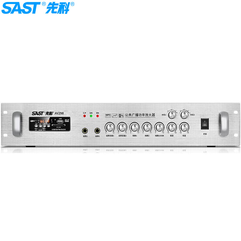 先科(SAST)AV298 定压定阻功放机 公共广播吸顶喇叭音响蓝牙功放 峰值功率180W价格:398.00元!