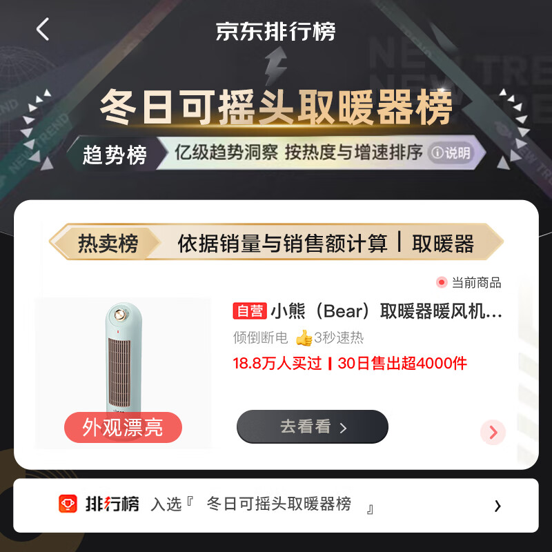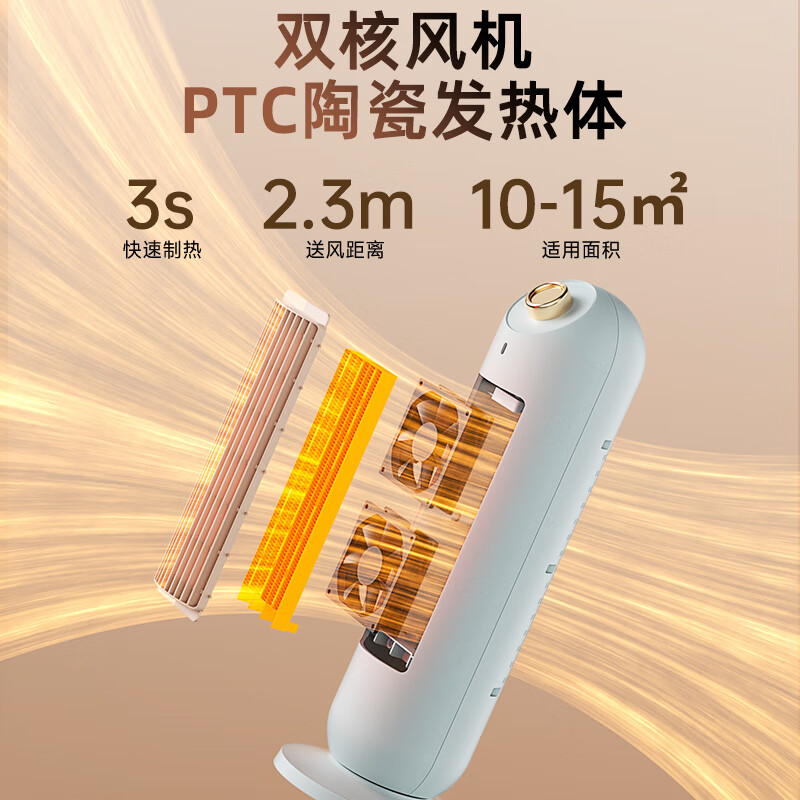 小熊(Bear)取暖器暖风机电暖气家用大面积电暖器小型立式热风机快速取暖电器桌面电暖风DNQ-C20B1(绿色)价格:175.50元!