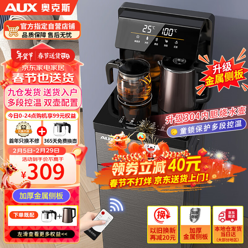 奥克斯(AUX)茶吧机 家用双出水口饮水机智能遥控立式下置水桶 双显大屏-温热型YCB-38价格:399.00元!