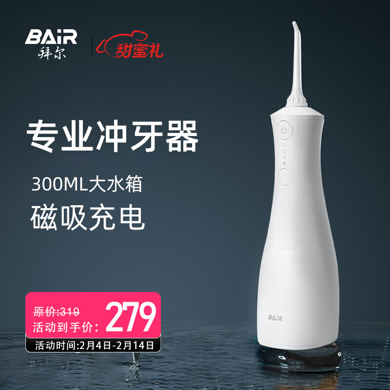 拜尔M301 电动冲牙器 手持式专业水牙线家用声波式去除超正畸专用牙齿清洁洗牙神器男 送女朋友 专业白价格:289.00元!