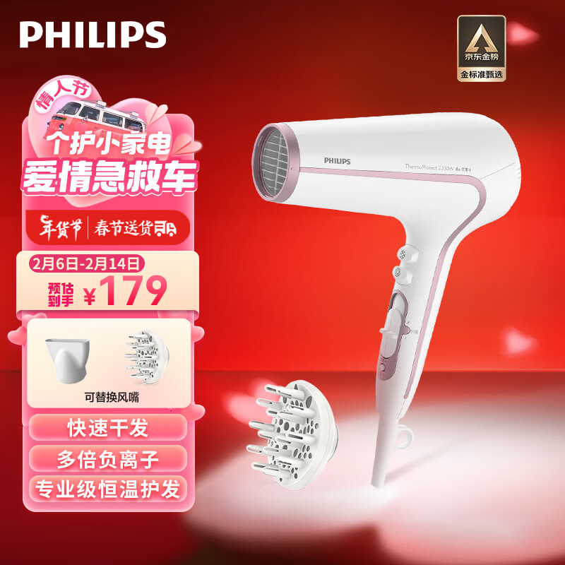 飞利浦(PHILIPS)电吹风机 入门必备 恒温护发 家用大功率速干 HP8235/00 白色价格:179.00元!