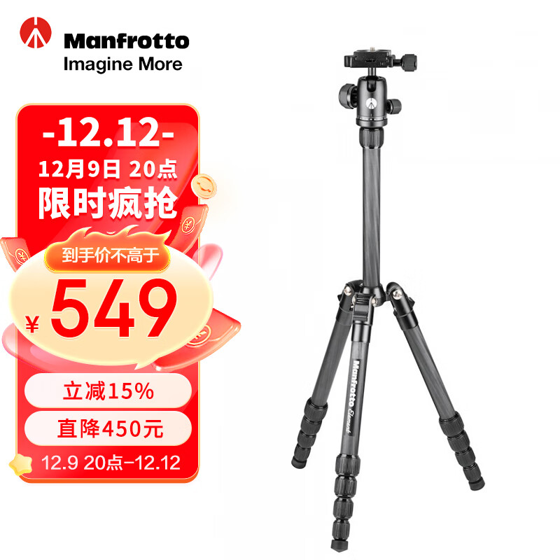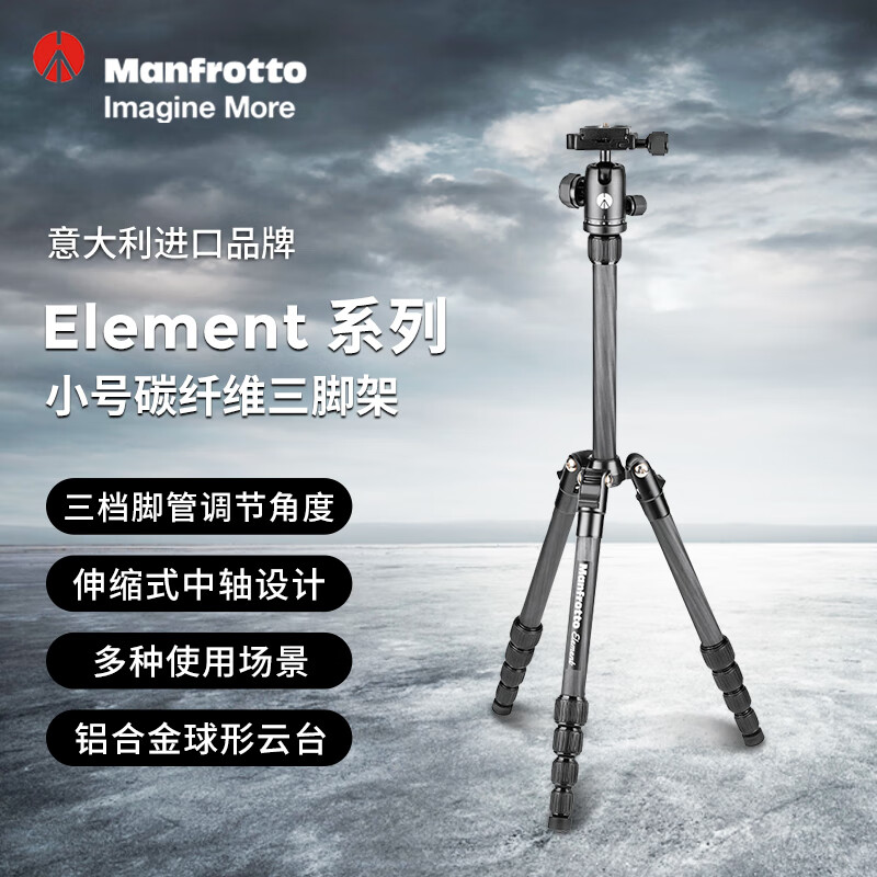 曼富图(Manfrotto)Element系列碳纤维反折式小号球形云台相机单反微单摄影摄像旋锁三脚架 MKELES5CF-BH价格:645.00元!