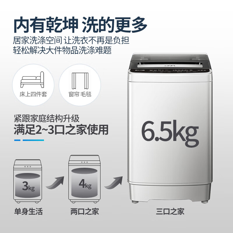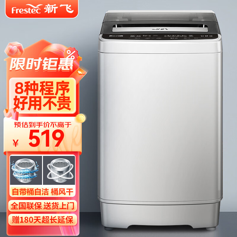 新飞(Frestec)6.5KG全自动波轮洗衣机 8程序8水位 一键快洗 一键桶风干 XQB65-1800D价格:519.00元!