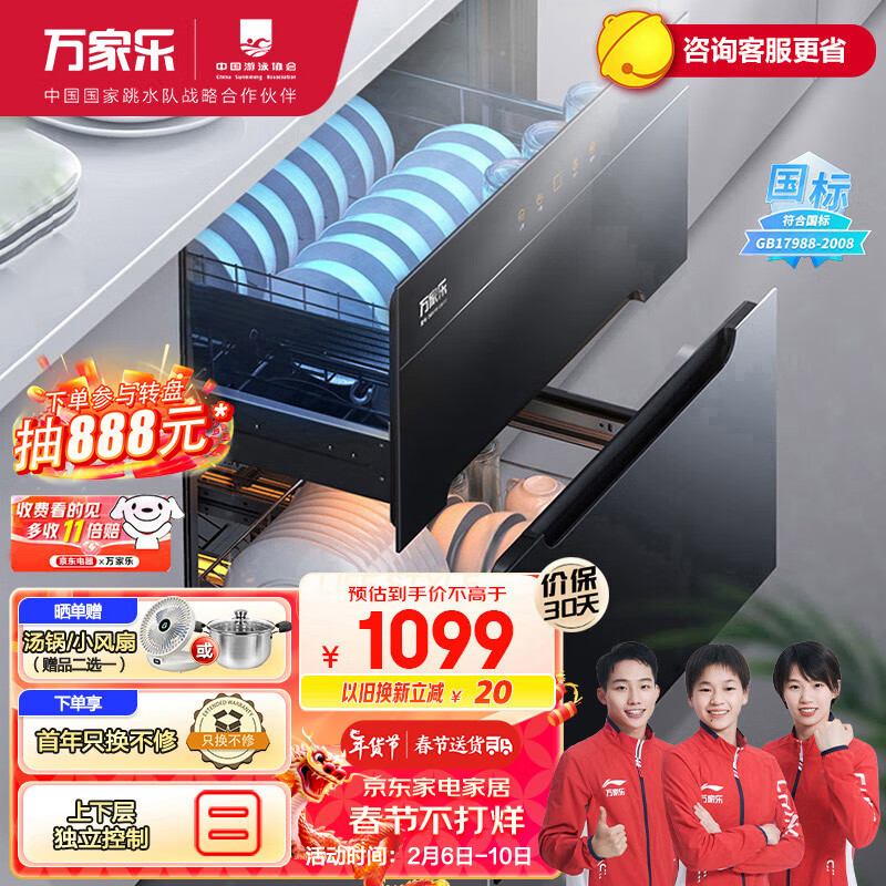 万家乐消毒柜 嵌入式厨房消毒碗柜110L家用 高低温二 紫外线臭氧杀菌 上下层独立控制ZQD110-DQ052价格:1099.00元!