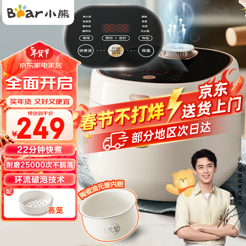 小熊(Bear)电饭煲 电饭锅迷你家用小容量一键快煮饭多功能预约定时配蒸笼元釜内胆3L蒸饭器 DFB-C30D1价格:279.00元!