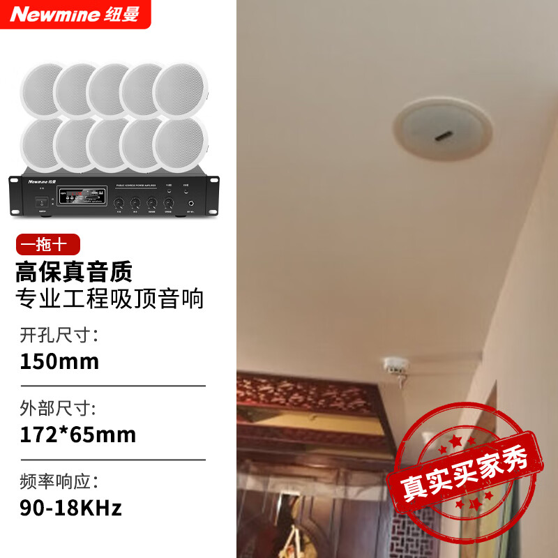 纽曼(Newmine)D161 定压吸顶喇叭音响套装 吊顶背景音乐公共广播功放音箱系统( 一拖十)价格:799.00元!