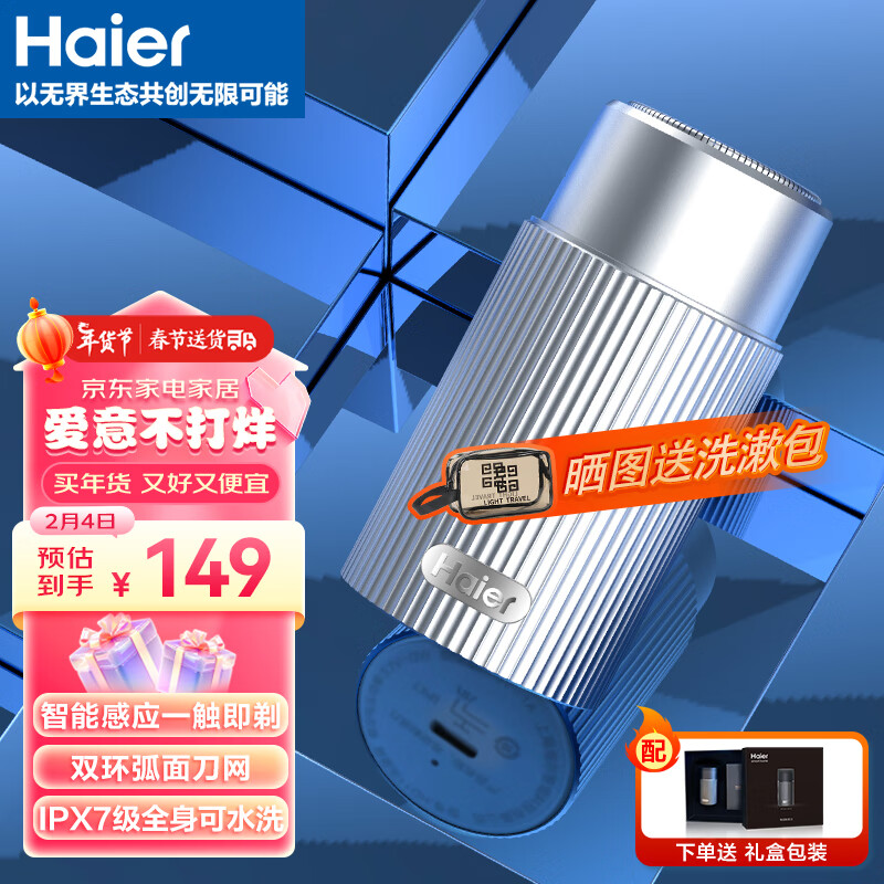 海尔(Haier)智能感应剃须刀小巧便携式迷你刮胡刀男士刮胡须刀送男友老公爸爸礼物刨须剃胡子刀HD11流星银价格:149.00元!