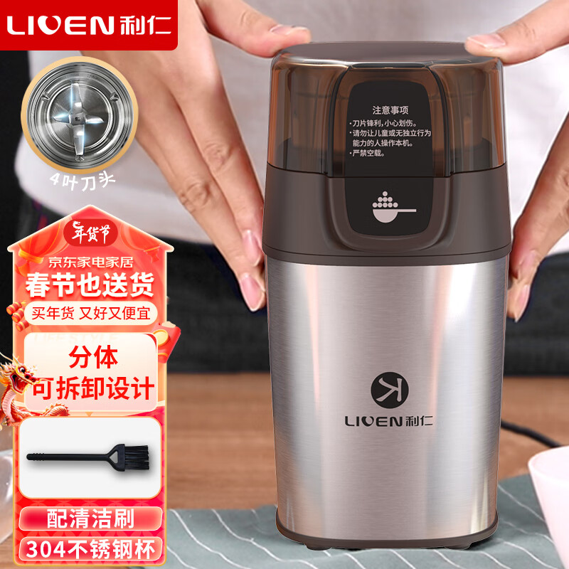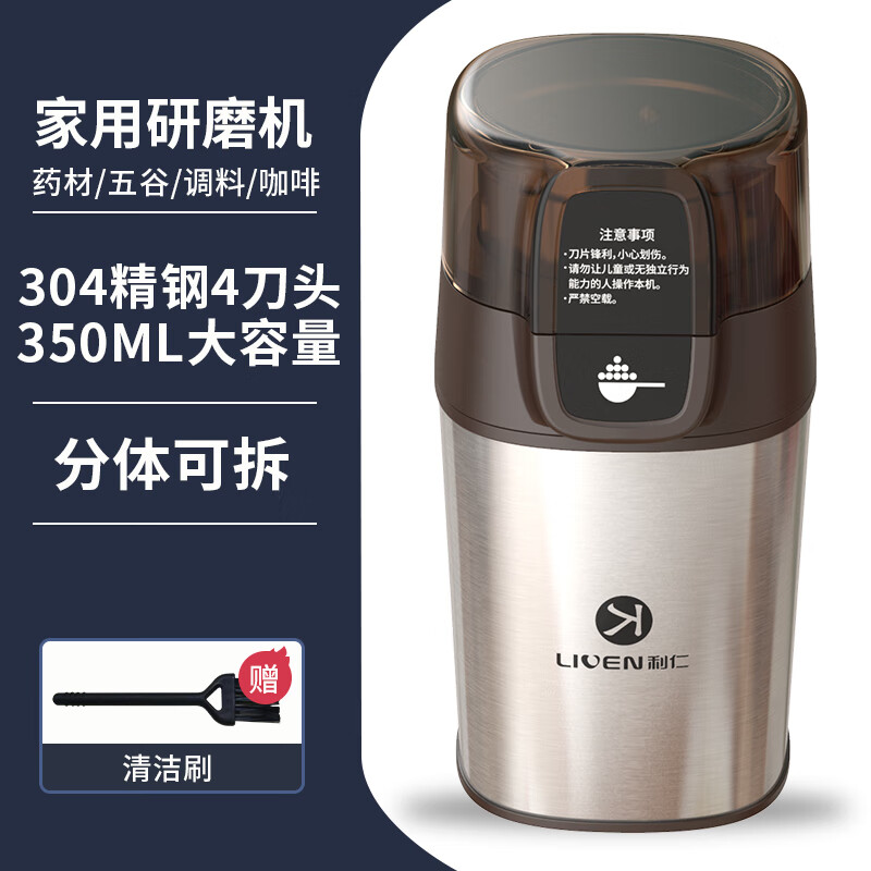 利仁(Liven)研磨机 磨粉机 磨豆机 辅食机 家用小型粉碎机 超细电动咖啡豆五谷杂粮打粉搅拌机料理机 MFJ-W317价格:109.00元!