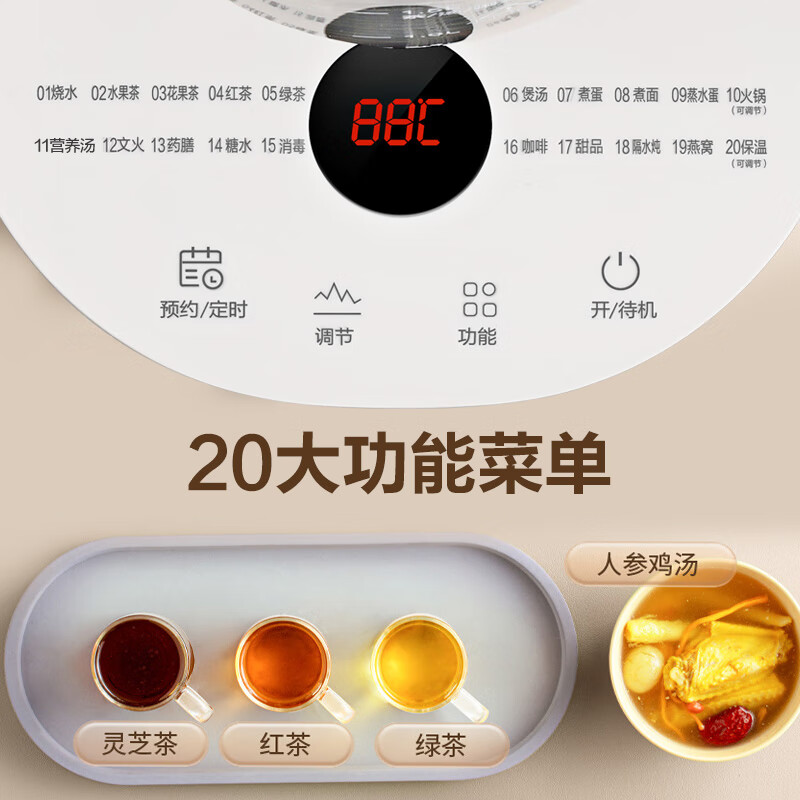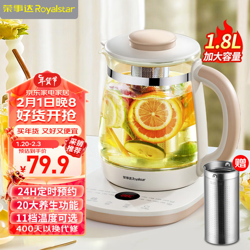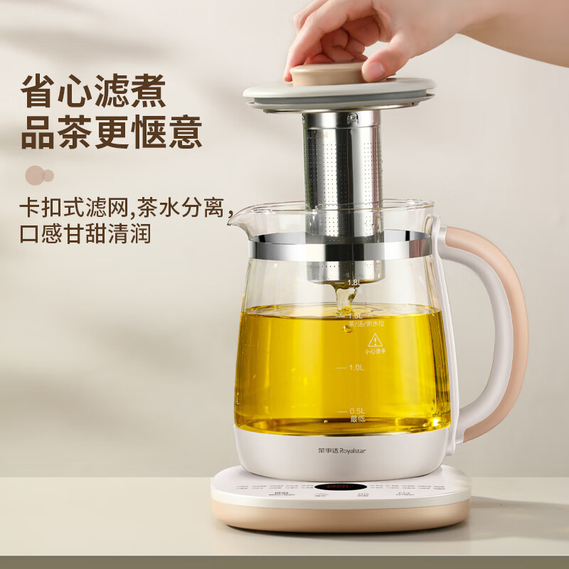 荣事达(Royalstar)养生壶1.8L家用电热水壶开烧水壶办公室煮茶壶水壶煮水壶恒温壶多功能玻璃花茶壶带滤网YSH18A6(L)价格:79.90元!