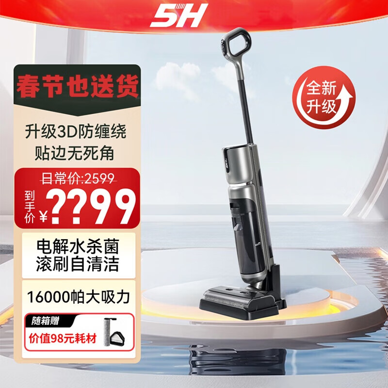 5H无线洗地机家用吸尘扫地拖地机 智能吸拖一体 电解水杀菌 躺平双贴边自清洁价格:1799.00元!