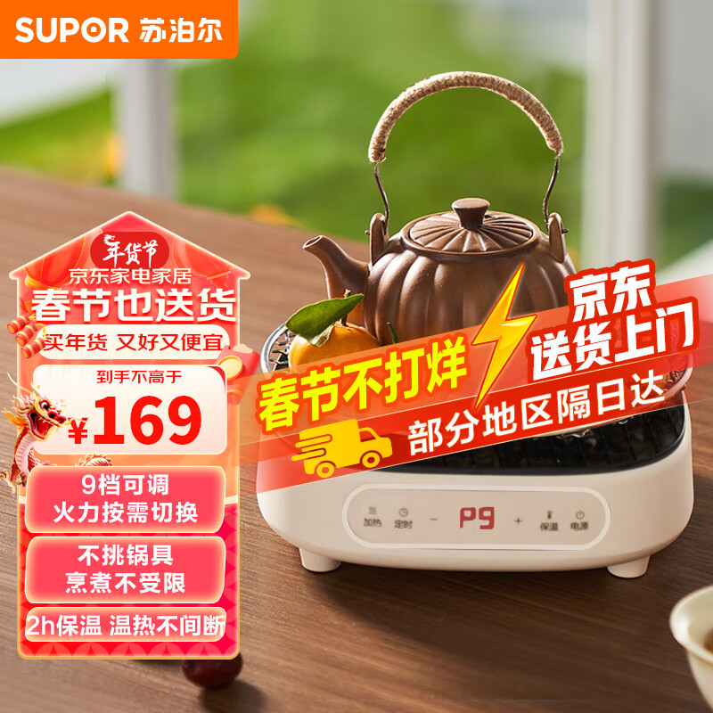 苏泊尔(SUPOR)电陶炉 电磁炉 烧水壶 煮茶炉 迷你 1000W大火力 不挑锅 轻音 家用 养生 围炉煮茶C10-CS15价格:159.00元!