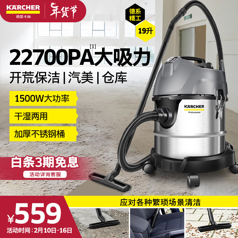 KARCHER 德国卡赫 家用商用工业不锈钢桶式干湿两用大功率大吸力吸尘器 NT20/1 联保价格:599.00元!