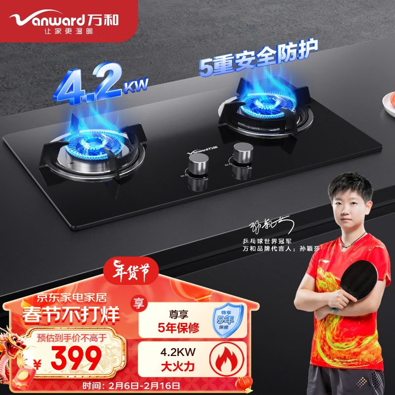 万和(Vanward)燃气灶4.2kW大火力 嵌入式台式两用灶具家用双灶 煤气炉煤气灶钢化玻璃 JZY-B3L20(液化气)价格:399.00元!