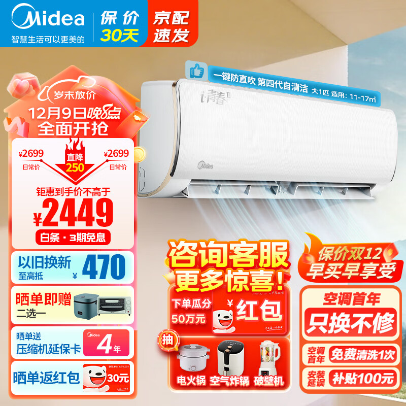 美的(Midea) 空调 新一级能效 i青春2大1匹一键防直吹 智能家电WiFi 冷静星升级款 KFR-26GW/N8XHB1Ⅱ价格:2449.00元!