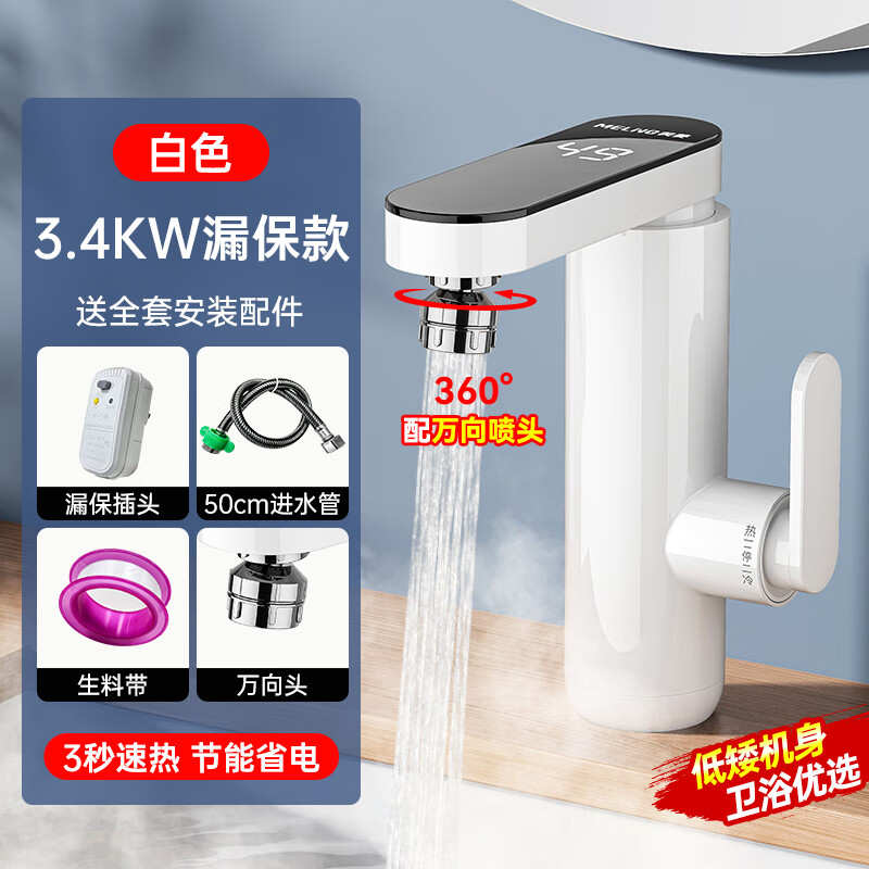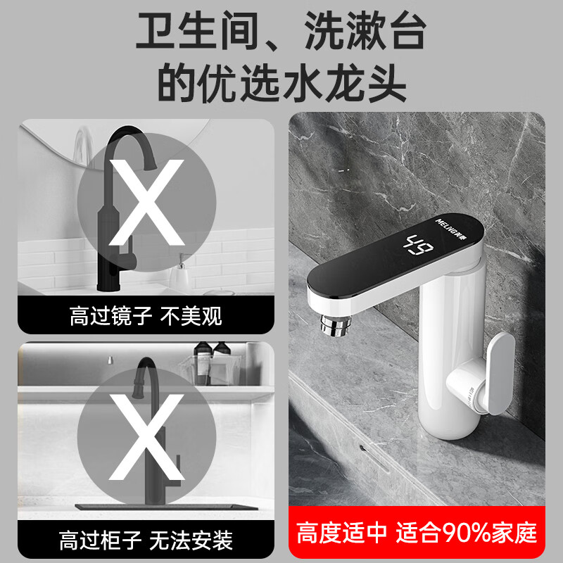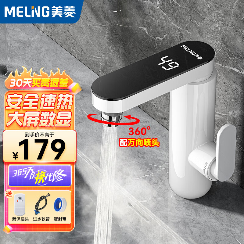 美菱MELNG 电热水龙头即热式热水器 厨房下进水速热家用快热式厨宝冷热两用 7字款水龙头MF-D357价格:179.00元!