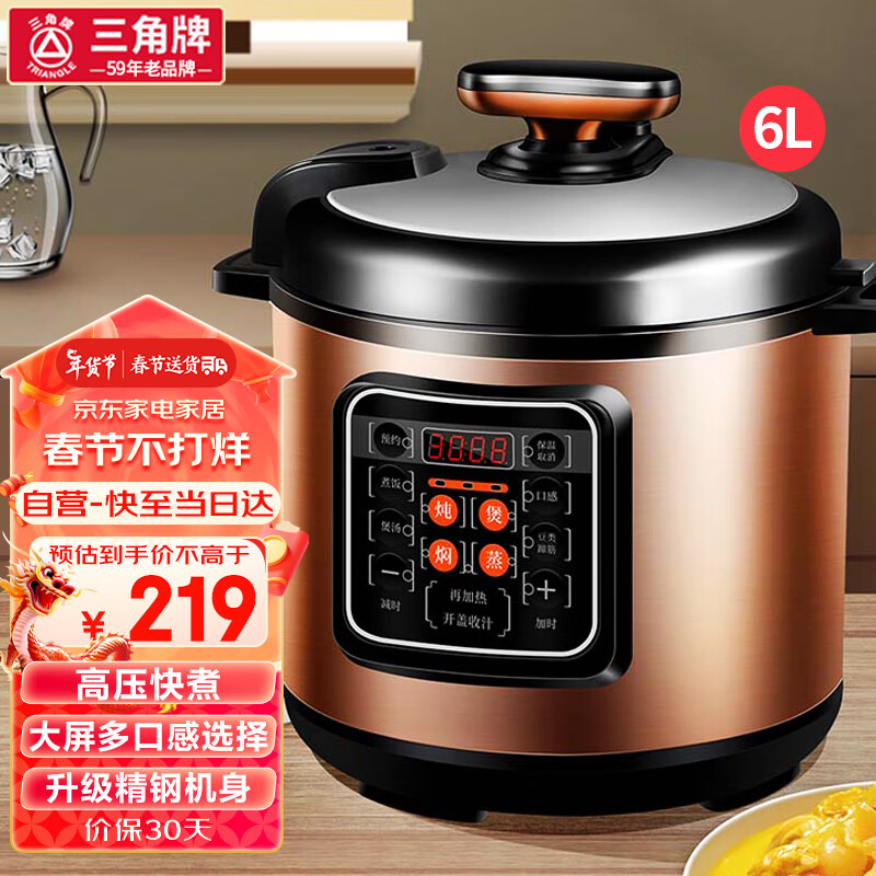 三角牌(Triangle)电锅家用高压锅多功能电高压锅高压电饭锅饭煲大容量煲汤 6升单胆(适合5-8人)价格:219.00元!