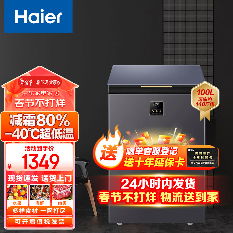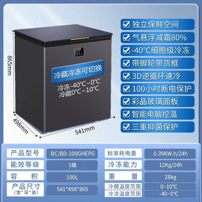海尔(Haier)冰柜100升家用商用冷柜迷你小冷柜小型冷冻柜一级能效节能速冻小冰箱 BC/BD-100GHEPG[家电]价格:1449.00元!