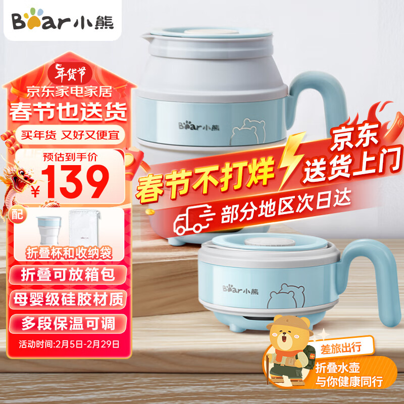 小熊(Bear)便携式烧水壶电水壶折叠水壶 烧水杯旅行家用恒温水壶养生冲奶保温热水壶电热水壶ZDH-A06G1价格:139.00元!
