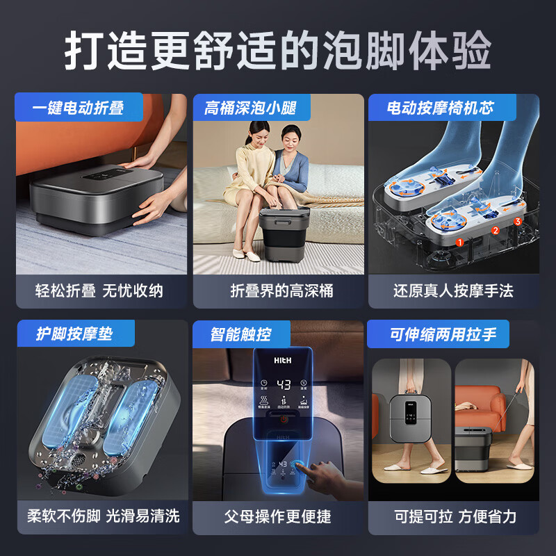 HITH泡脚桶电动折叠足浴盆 全自动按摩智能恒温加热足疗泡脚盆 节日礼物送父母 YMZ-D5价格:779.00元!