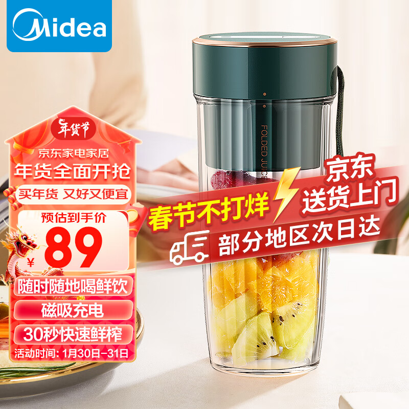 美的(Midea)榨汁杯小型便携果汁杯辅食机电动家用迷你多功能榨汁随行杯榨汁机 LZ4X2-100C价格:89.00元!