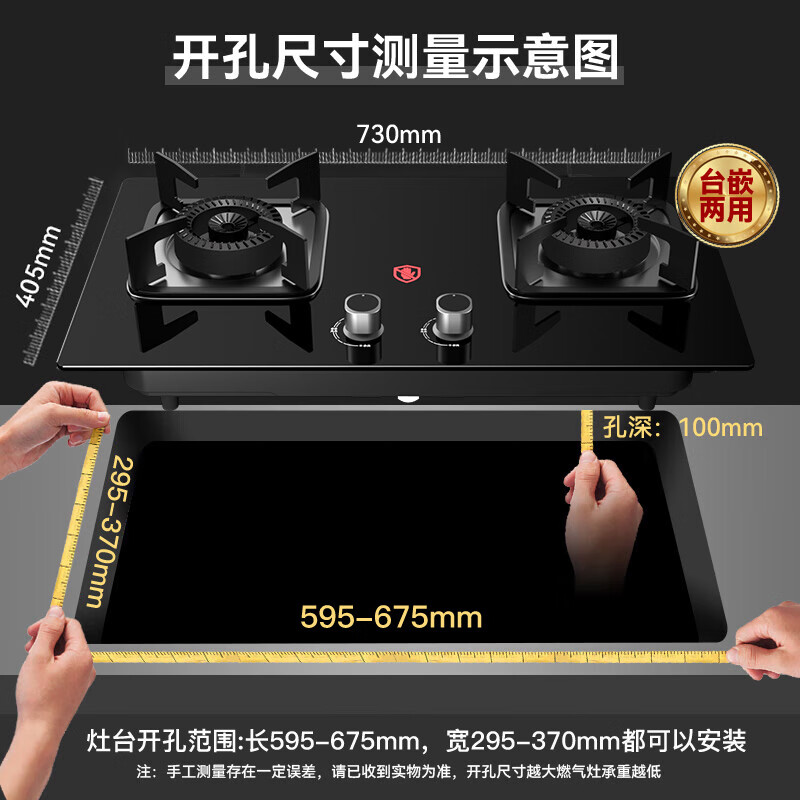 灶具开孔尺寸:640±20mm(灶台挖孔长度)