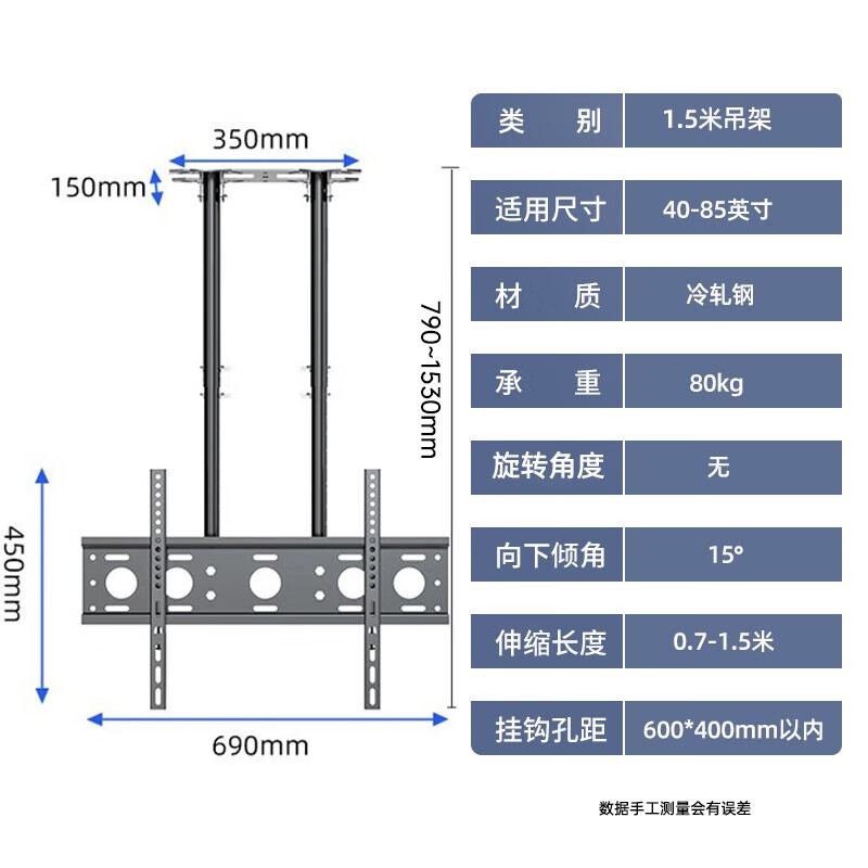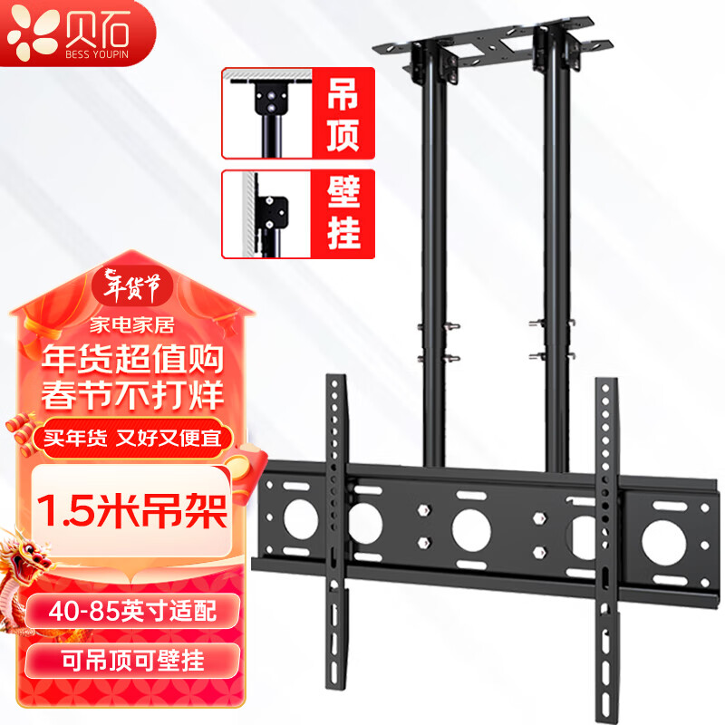 贝石 电视吊架电视机壁挂旋转支架360度旋转吊架电视吊顶架天花板电视吊装挂架 【40-85英寸】1.5米吊杆|双杆支撑承重强价格:199.00元!
