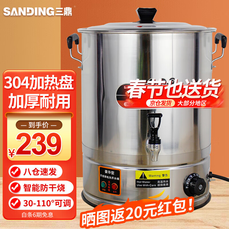 三鼎电热开水桶开水器商用烧水桶奶茶店家用不锈钢保温热水桶大容量 SD-40L-D价格:259.00元!