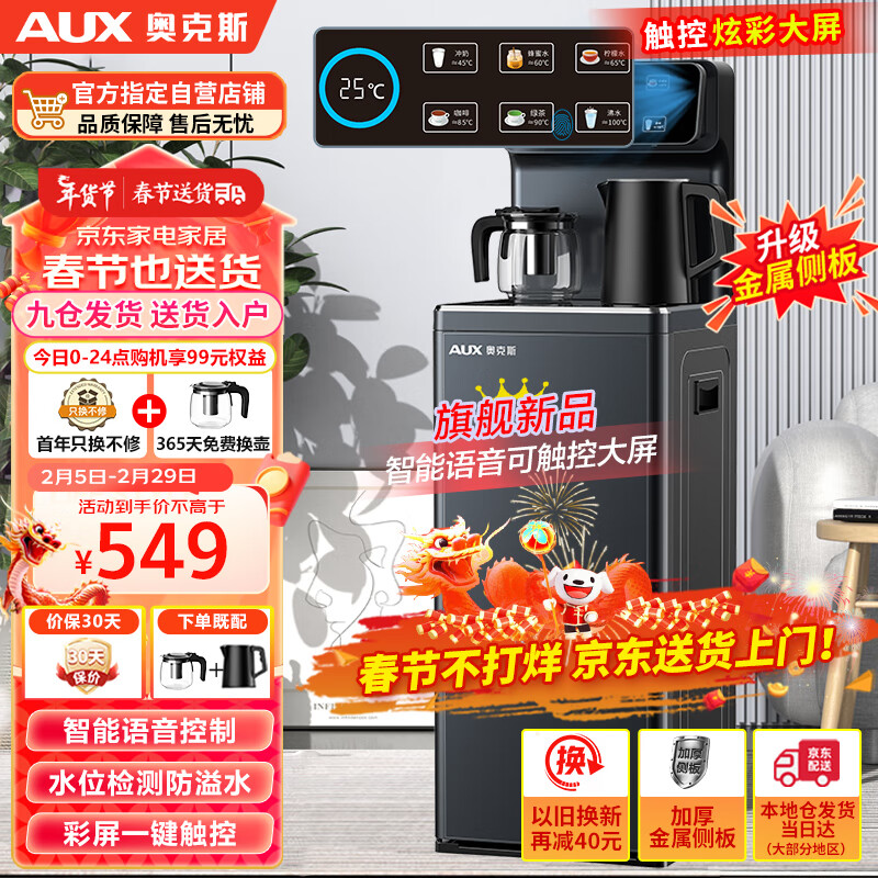 奥克斯(AUX)家用智能语音控制 饮水机立式升级大款彩屏触控可多档调温 水位检测加厚侧板温热型茶吧机YCB-59价格:549.00元!