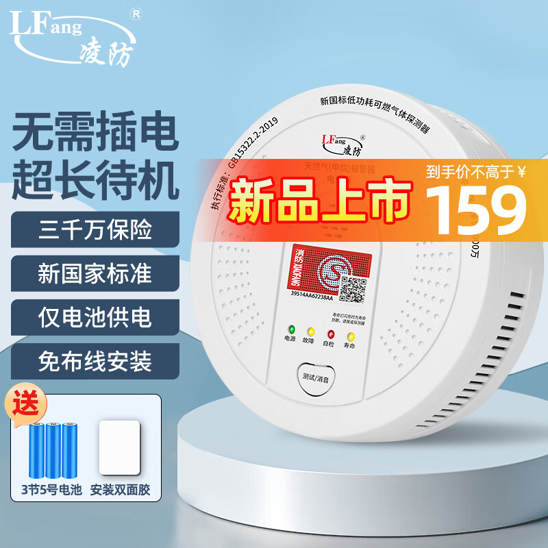 凌防(LFang)JT-QF-D730 电池版新国标燃气报警器天然气报警器智能家用厨房可燃气体探测泄漏消防报警器价格:159.00元!