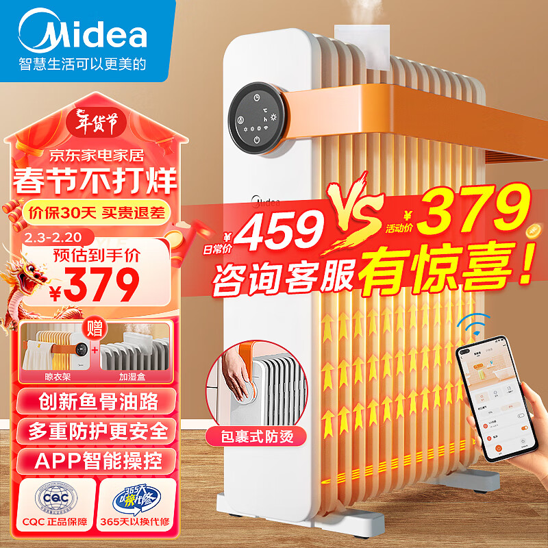 美的(Midea)【暖阳系列】取暖器/电热油汀/加热电暖器/立式电暖气/家用WIFI智能遥控防烫加湿恒温 HYW22KRB价格:476.00元!