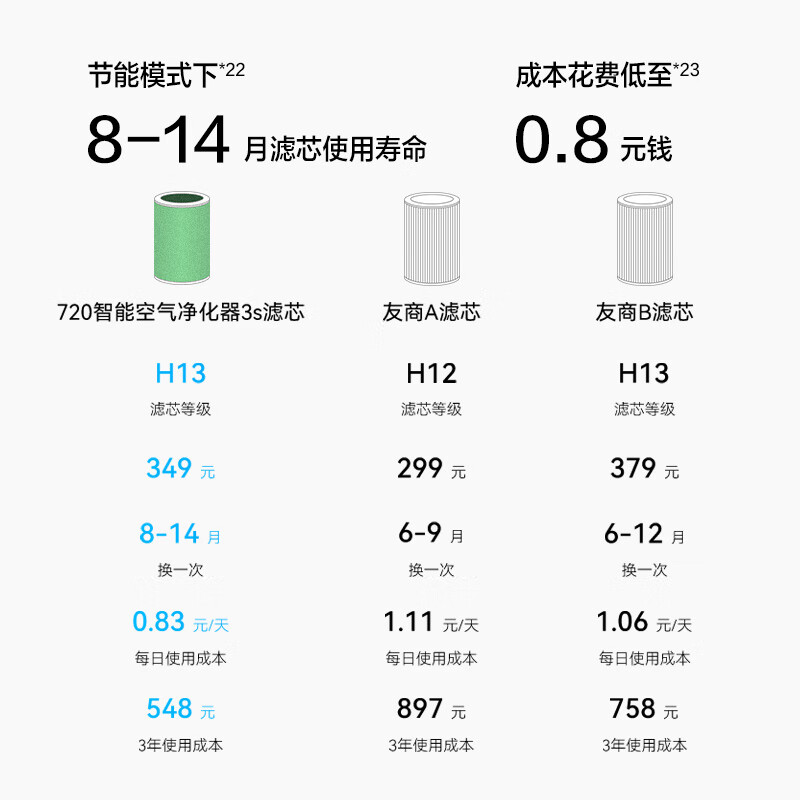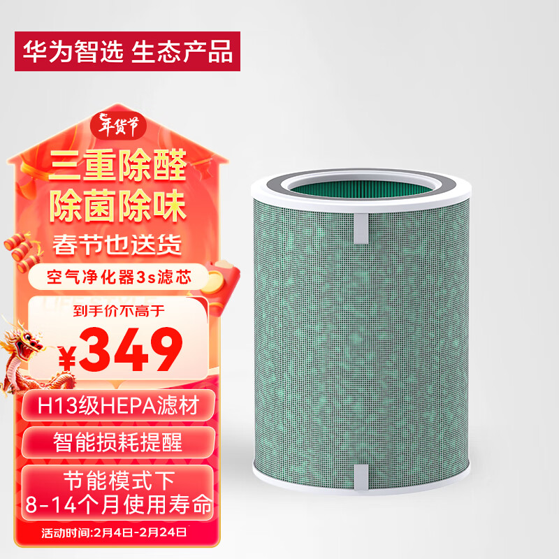 华为智选 720空气净化器滤芯滤网 专业除甲醛多重除菌除味 经久耐用 适配净化器3s价格:349.00元!