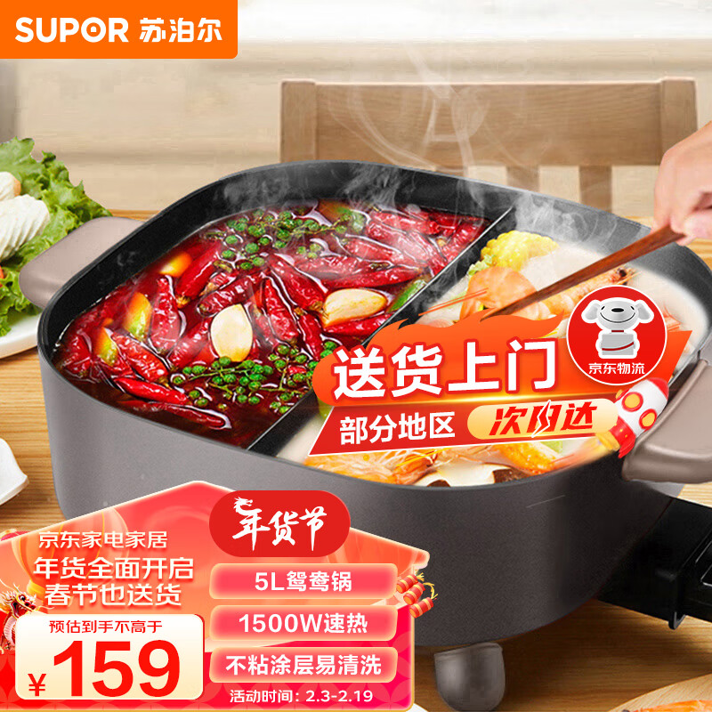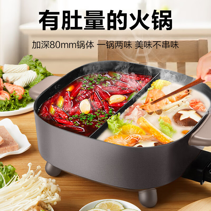 苏泊尔 SUPOR 电火锅 鸳鸯锅火锅专用锅涮肉锅电煮锅火锅锅 家用多功能锅 电热锅 多用途锅 H2828FK614Y价格:159.00元!