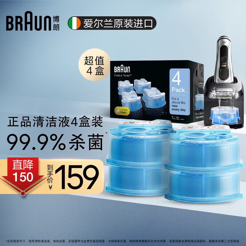 博朗(BRAUN)剃须刀配件CCR4清洁液4盒【囤货装】博朗清洁中心通用杀菌清洁送男友价格:159.00元!