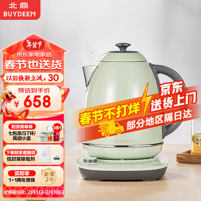 北鼎 Buydeem 炫彩304不锈钢调温热电水壶 K740C浅杉绿价格:658.00元!