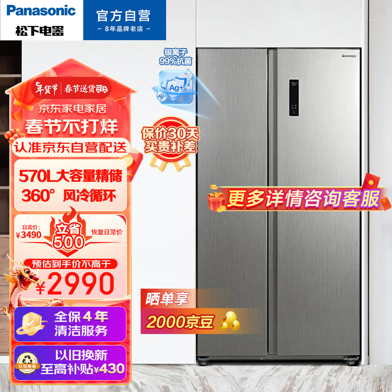 松下(Panasonic)570升大容量冰箱双开门 对开门冰箱 银离子kang菌 速冻模式 0.1度精准控温NR-JW59MSB-S价格:2990.00元!