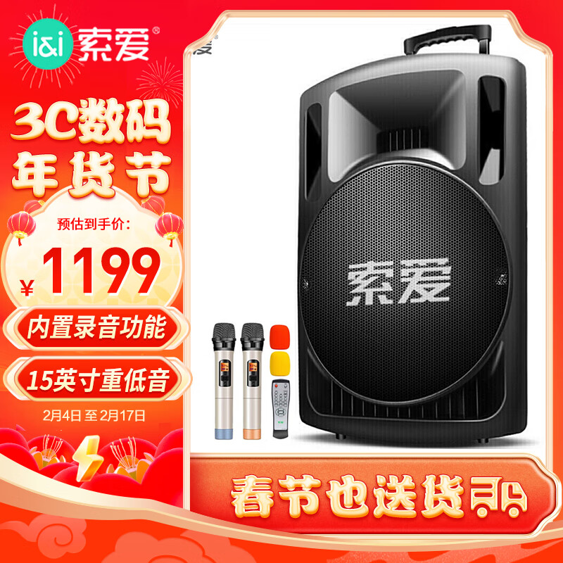 索爱(soaiy)A96 15英寸大功率重低音广场舞音响 移动户外拉杆音箱 便携式扩音器价格:1199.00元!