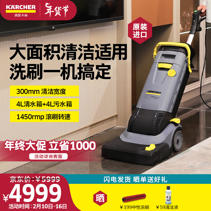 KARCHER 德国卡赫 进口洗地机大面积清洁商用物业小型手推式洗拖一体扫地机 BR30/4C价格:4999.00元!