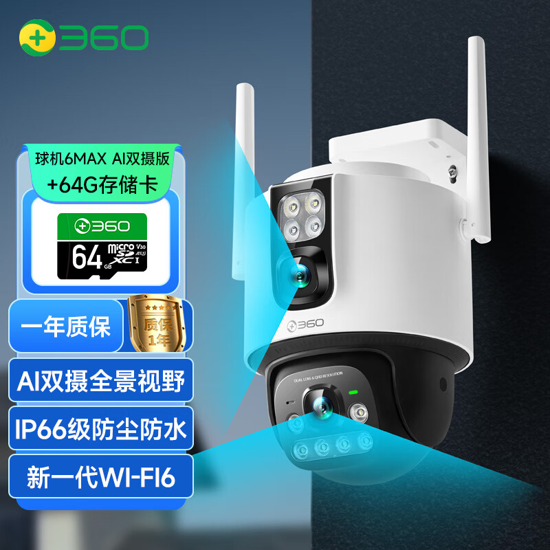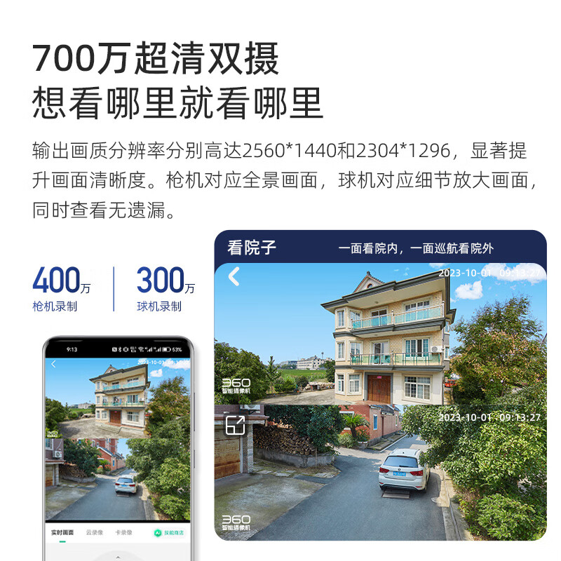 360户外球机6Max 700万超清双摄家用无线监控器手机远程家庭监控 360度全景室外摄像头双画面防水夜视价格:449.00元!