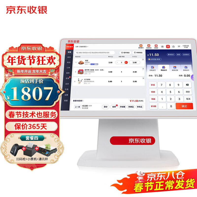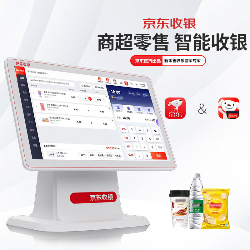 京东收银 京东支付收银机一体机超市零售便利店收款机称重收银系统软件餐饮扫码点餐 收银机+扫码枪+小票机+通讯秤+收银软件价格:2107.00元!