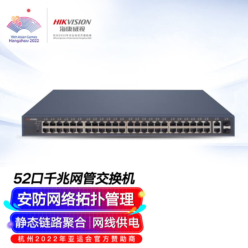 海康威视52口千兆交换机POE供电企业级交换器监控网络网线分线器分流器金属外壳散热DS-3E1552SP-E价格:3915.00元!