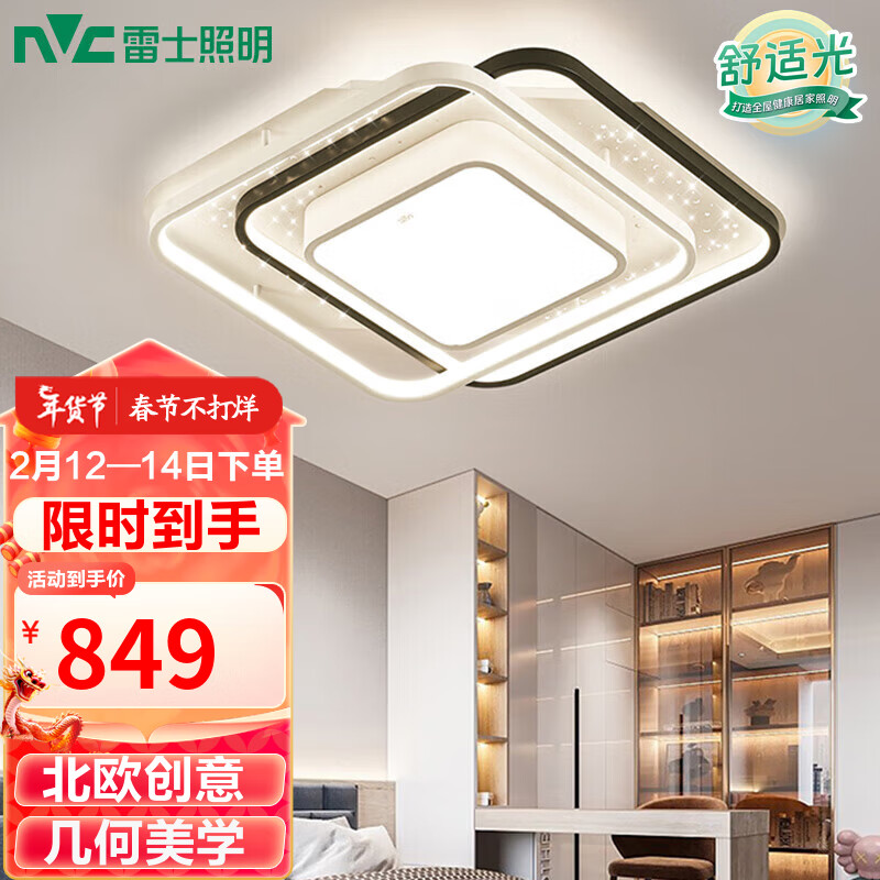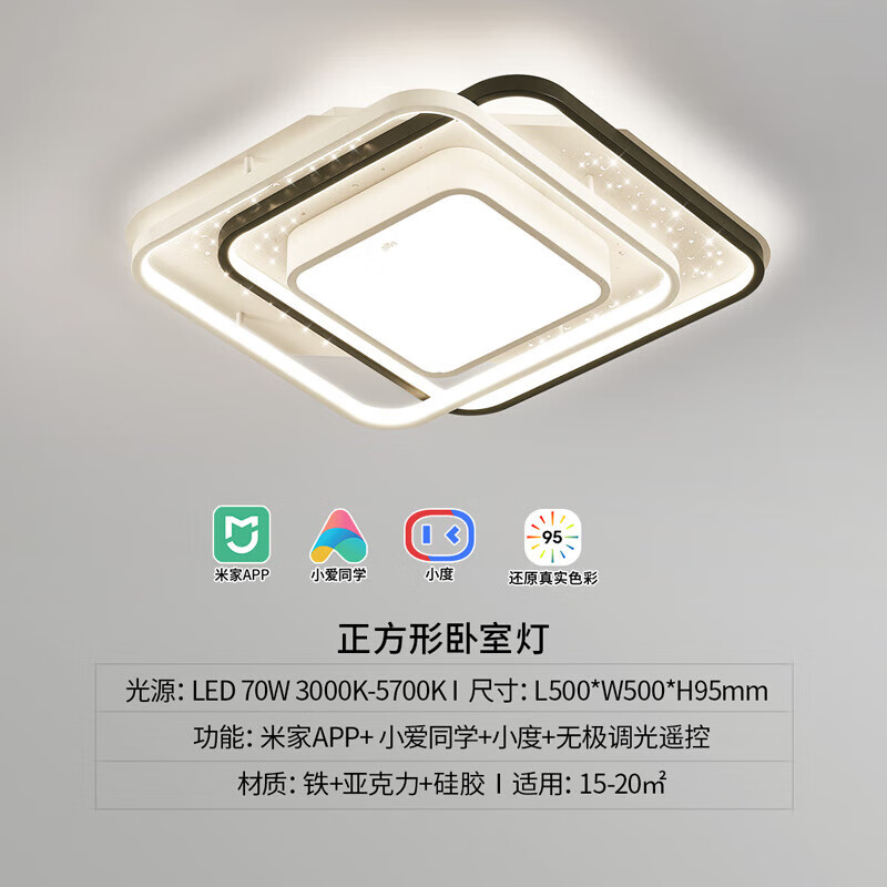 雷士(NVC)简约星空氛围感LED米家智能吸顶灯房间灯书房灯饰灯具-繁星方灯价格:866.00元!