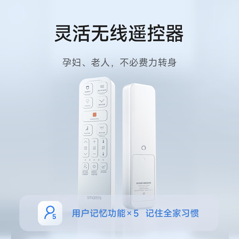 1、买过好几个智米马桶盖和智能马桶,现在的座圈有改良,以前硌腿,现在比较贴合了,功能也很齐全,能调节的功能比以前多,遥控器也很好用,现在这款臀洗没有老款水流力度大,希望能改进一下,安装师傅一般般,还没有马桶的师傅安装自带盖子认真