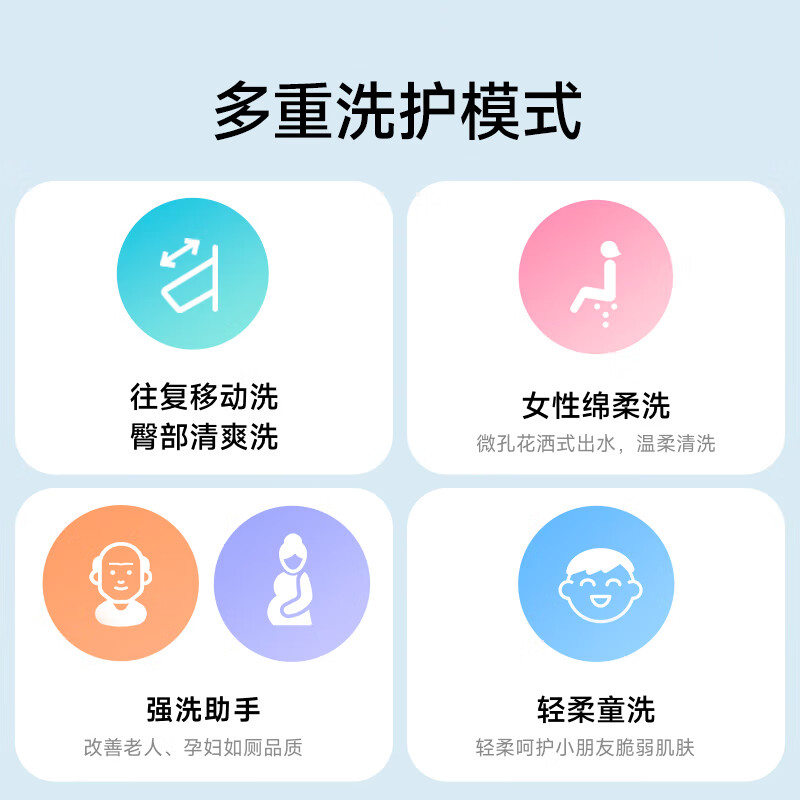 功能:暖风烘干,自动除臭,臀部清洁,座圈加热,座圈感应,喷嘴自洁,喷嘴移动清洗,女性清洗,儿童清洗,记忆功能,净化水质,助老功能,夜灯照明,一键操作